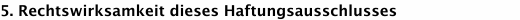 Dieser Haftungsausschluss ist als Teil des Internet- Angebotes zu betrachten, von dem aus auf diese Seite verwiesen wurde. Sofern Teile oder einzelene Formulierungen dieses Textes der geltenden Rechtslage nicht, nicht mehr oder nicht vollständig entsprechen sollten, bleiben die übrigen Teile des Dokumentes in ihrem Inhalt und ihrer Gültigkeit davon unberührt. | ||||||||||||||||